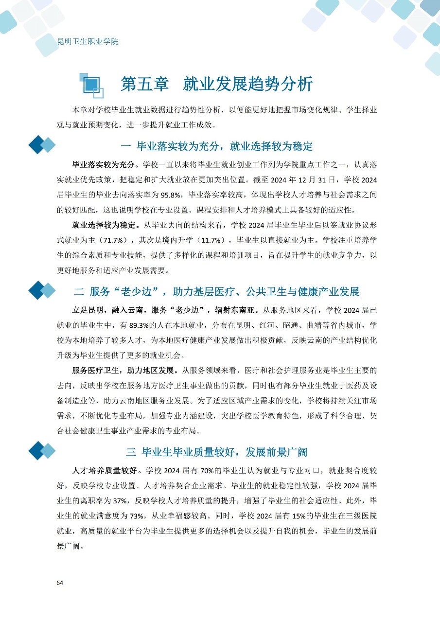 昆明卫生职业学院2024年毕业生就业质量年度报告