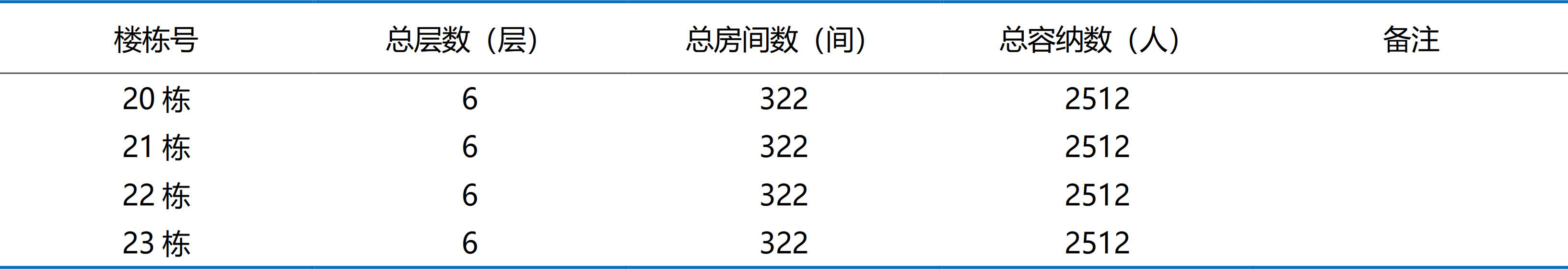 2019年至2022年新增了4栋学生公寓,总计22栋学生公寓,覆盖我校3期片区,新增20栋-22栋,按照8人间,总的4栋的容纳量为10048生,全院总容纳为21860生。新增4栋具体如下: