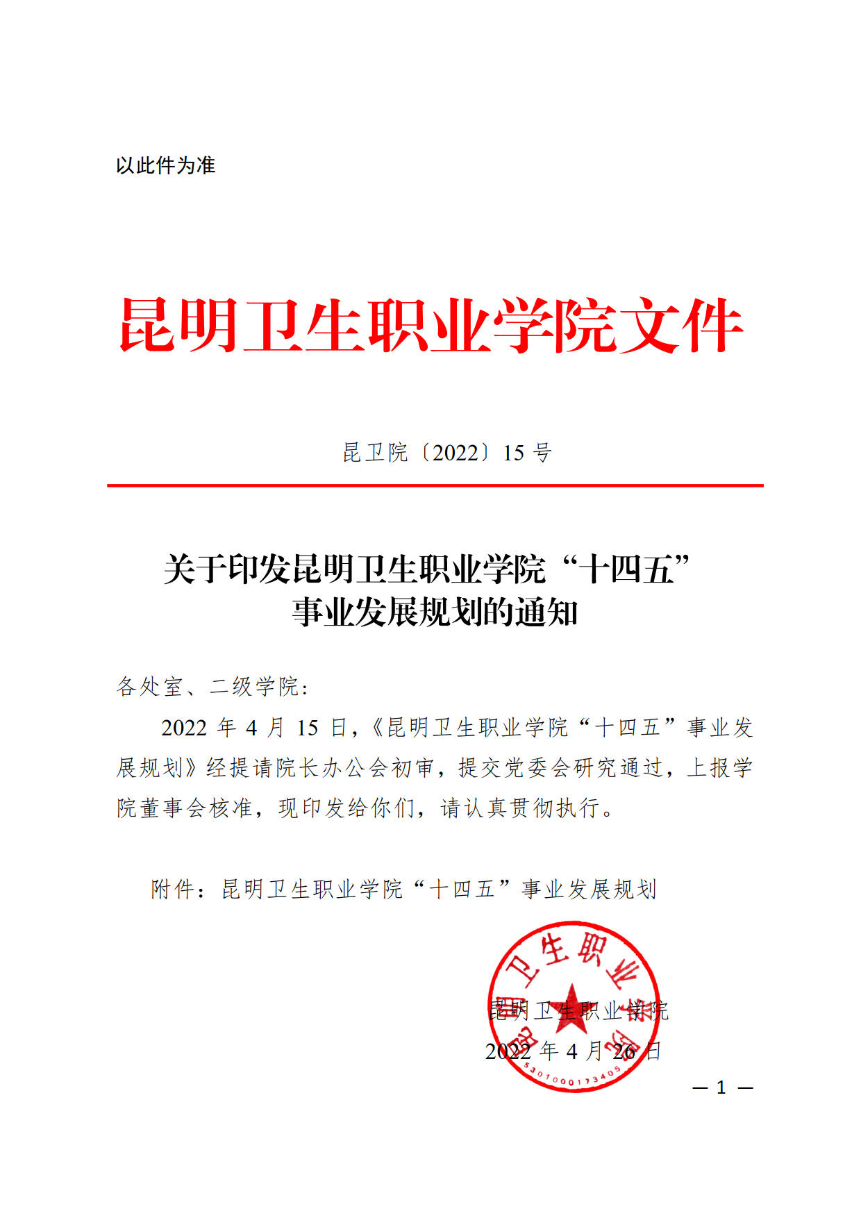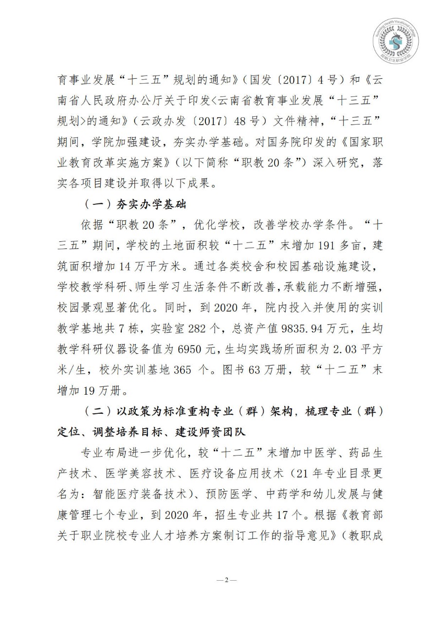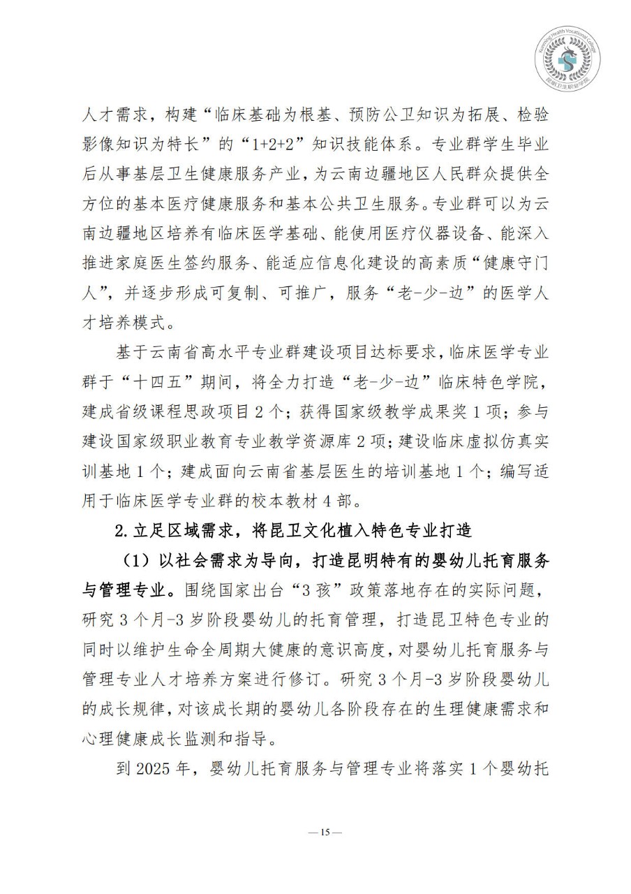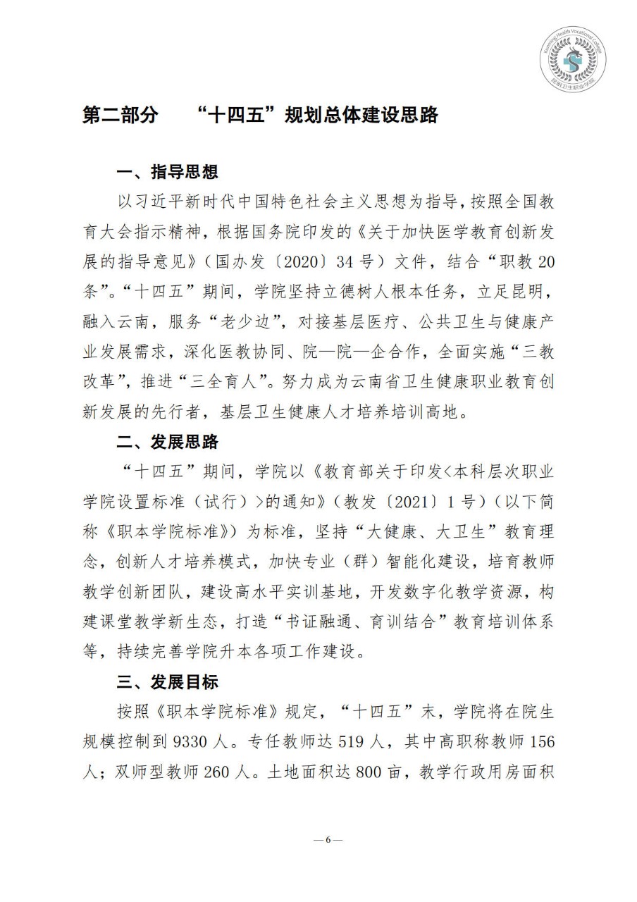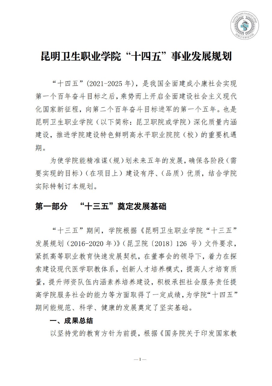 昆明卫生职业学院“十四五”事业发展规划