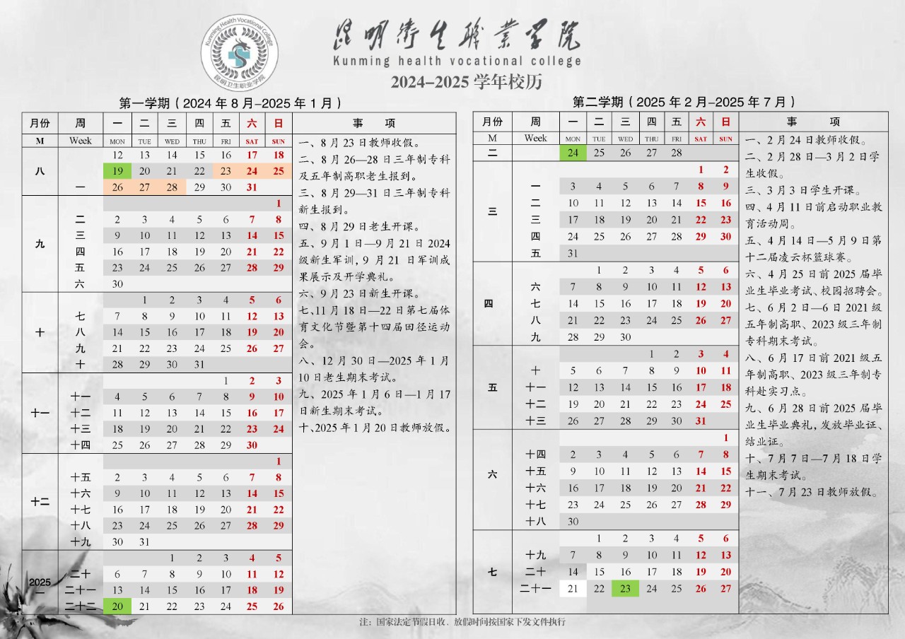 昆明卫生职业学院 2024-2025 年校历