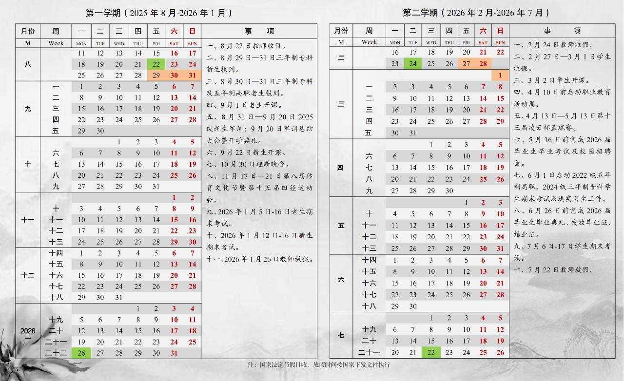 昆明卫生职业学院 2025-2026 年校历
