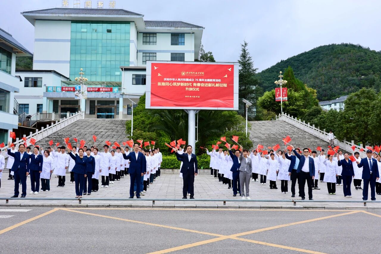 昆明卫生职业学院两校区同步举行庆祝新中国成立76周年主题升旗仪式