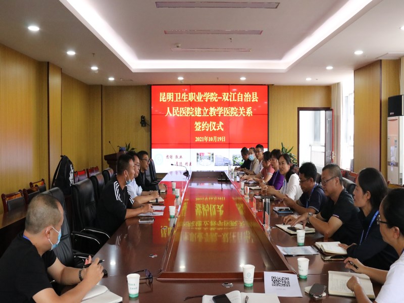 10月19日,我校与双江县人民医院举行了教学医院签约仪式。双江县人民医院皮永芳院长,铁华江副院长,谢才怀副院长,昆明卫生职业学院张尤松副院长,实习管理处颜慧林处长,实习管理科杨正宇,双江县人民医院院长助理施晋及和各科室主任出席了签约仪式。会上,皮永芳院长代表医院对我校张尤松副院长...