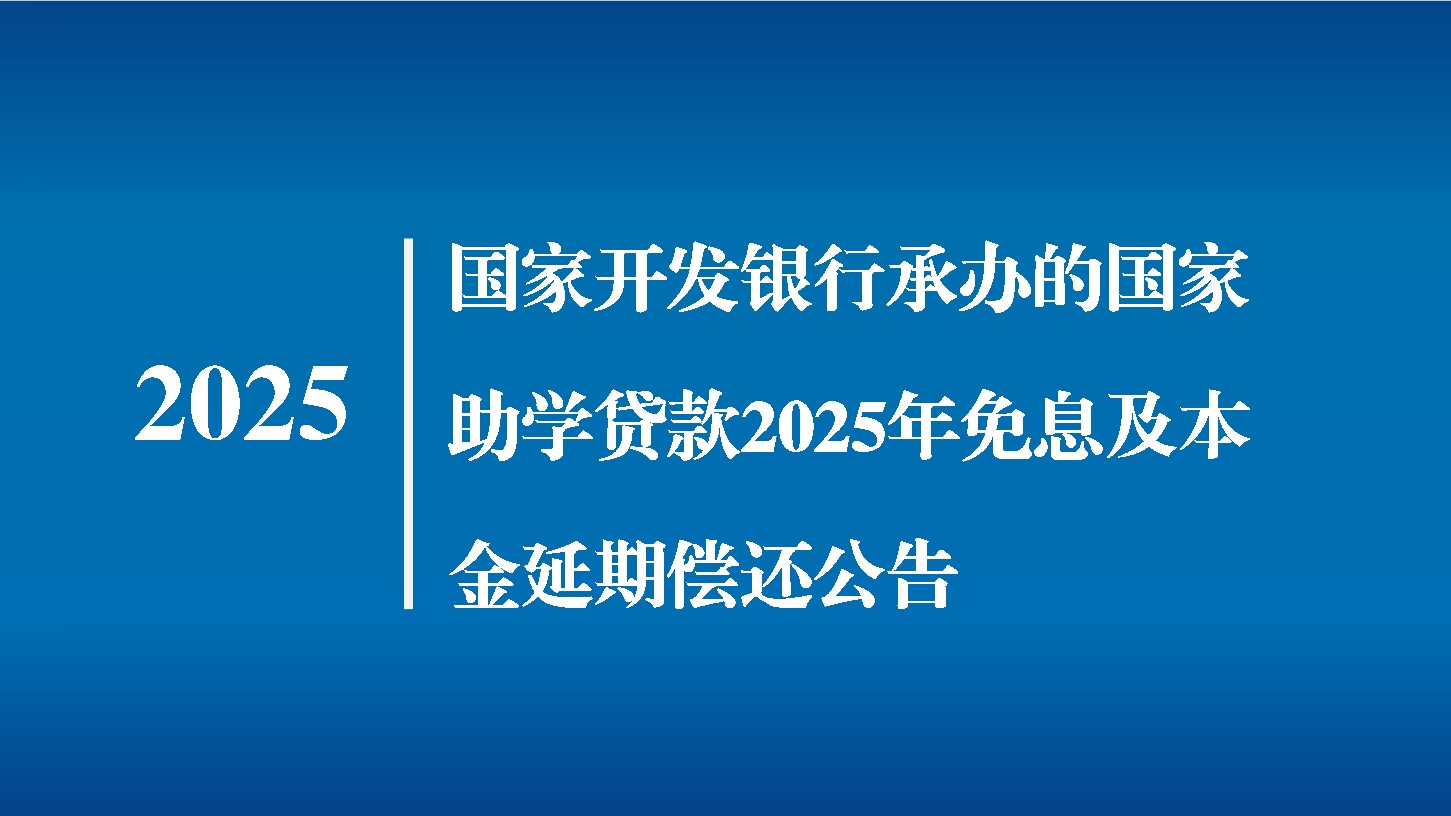 国家开发银行承办的国家助学贷款2025年免息及本金延期偿还公告