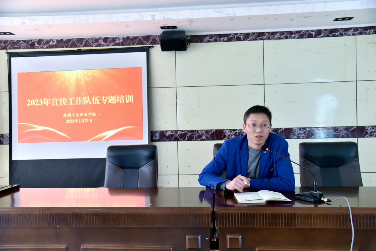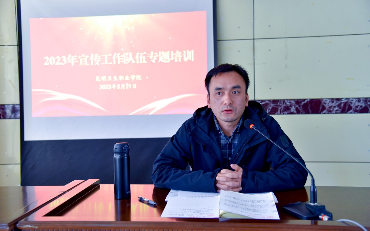 为不断提升学院宣传工作人员理论素养、知识水平、业务能力,推动宣传工作更好地服务学院中心工作,3月21日,学院启动2023年宣传工作队伍能力提升培训。学院党委书记马季昕出席会议并作工作指示,党委委员、宣传统战部长王斌就宣传工作进行安排部署,党委宣传部工作人员、各党(总)支部宣传委员、各部处室宣传通讯员近40人参加培训。