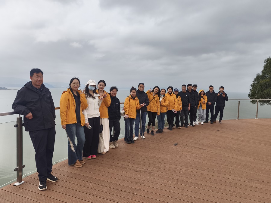 当日下午 14 时许,教师们身着舒适衣物、脚踩休闲鞋,精神饱满地集结于滇池南沙滩公园入口。此次徒步活动的设计,既注重 “亲近自然、舒缓身心” 的核心目的,也暗藏 “协作互动、凝聚共识” 的深层意义 —— 路线选取沙滩旁螺旋步道,全程约 5 公里的往返路程中,特意设置观景平台打卡点,既为老师们提供欣赏滇池初冬风光、呼吸新鲜空气的机会,也通过 “团队协作” 的形式打破日常工作壁垒。活动中,老师们自由组建 3-4 人小组,结伴而行时畅谈教学中的难点突破、科研中的思路碰撞,更在打卡点共同设计创意合影 pose、用镜头记录滇池美景,让 “同行” 不仅是脚步的同步,更是思想的同频。