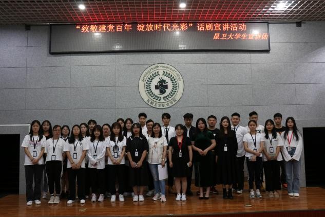 100年的暴风骤雨,中国共产党指引我们前进的方向,100年的惊涛骇浪,中国共产党指导我们正确前行,100年的峥嵘岁月给我们力量,100年的沧海桑田党让我们成长。历史验证了中国共产党的伟大历程,我们要铭记党,拥护党,所谓党民一心,我们感叹幸福生活的来之不易,更要时刻铭记革命先烈建党的艰辛路程。昆明卫生职业学院大学生宣讲团于2021年4月26日在学术报告厅开展“致敬建党百年绽放时代光彩”话剧宣讲活动。