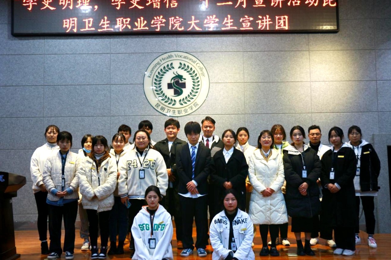 学史明理,学史增信,学史崇德,学史力行。不忘来时的路,才能行稳致远。中华新征程的巨轮已经起航,作为青年大学生的我们,应积极响应国家的号召,从当下开始,正确认识党史、遵循科学规律、站稳政治立场、把握发展方向,努力实现“学史以明智,勤思方致远”的目标追求。昆明卫生职业学院大学生宣讲团于2021年12月13日下午18:40分在学术报告厅开展十二月“学史明理,学史增信”主题宣讲活动。