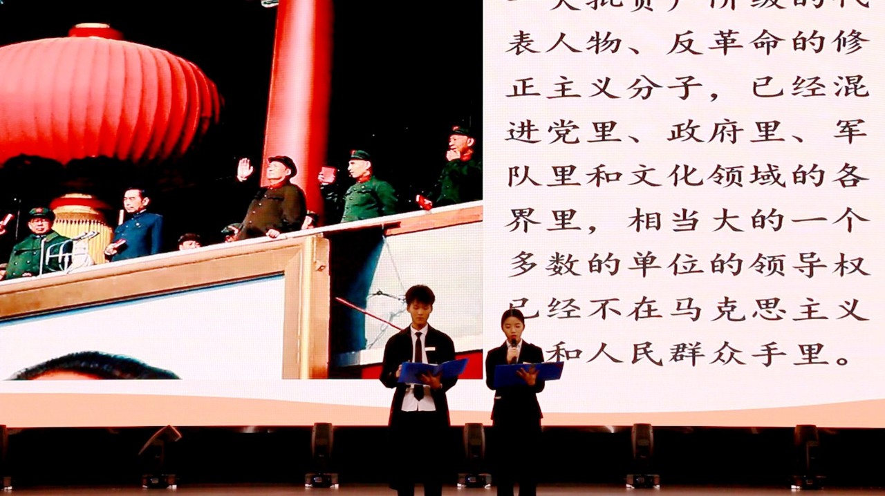 紧接着第三组宣讲员刘伟、李桂秀、胡春、资璇同学带来了宣讲《峥嵘岁月》。1966年,一场令人印象深刻的“革命”开始了。一场长达十年的内乱,给中国人民带来了不可逆转的伤害,给党和人民造成了不可磨灭创伤的“文化大革命“爆发了。十年浩劫,文人失声,风骨折腰,长河浩荡,岁月奔波,一种使命和信念却在时间与灾难的淘洗下璀璨坚实。作为青年一代我们更应该将党的伟大精神继续发扬光大,在新时代的历史中铭记党的奋斗史。毛主席曾说过“你们青年人朝气蓬勃,正在兴旺时期,好像早晨八九点钟的太阳。希望寄托在你们身上。我们要在新时代中积极靠近党,学习我们党不断进步的精神。