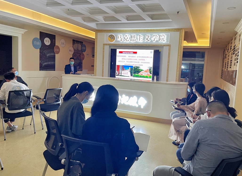 为深入学习贯彻习近平总书记在中国人民大学考察时的重要讲话精神,2022年5月10下午,马克思主义学院组织召开专题学习会议,围绕习近平总书记在在中国人民大学考察时重要讲话精神和给北京大学老教授回信精神进行讨论交流。会议由副院长苏敏主持,马院全体思政课教师参加了本次会议。