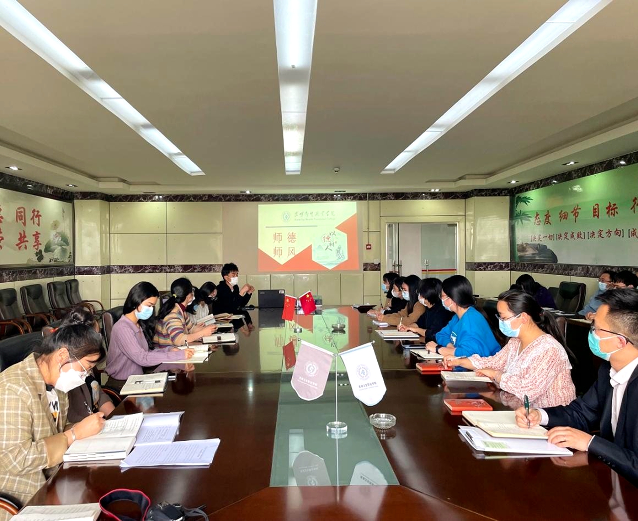 2022年11月1日晚,为深入了解本学期《毛泽东思想和中国特色社会主义理论体系概论》课程的教学情况,提升教学效果,我院在党建活动室召开师生座谈会。本次会议由综合办主任徐玲菲主持,副院长苏敏、毛中特教研室主任郑跃林及2021级高职各专业学生代表参加了座谈会。座谈会伊始,苏老师与参会同学们交流毕业准备工作及未来规划,并要求同学们在强化专业知识的同时要提升自身思想认识,积极了解时事政策,感受时代的变化,...