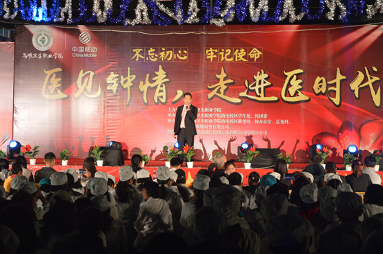 11月1日晚,我院“医见钟情,走进医时代” 2017年迎新晚会在海屯校区隆重举行。副院长王玲、陶晓燕,教务处处长霍海乐,培训处处长曾庆波,海源校区学生处处长黄文明,海屯校区学生处副处长王洪超、金文艳,教务处副处长杨租良、何洪凤,学院人事处副处长庞娟,院办公室副主任谭婧媛出席了本次晚会。