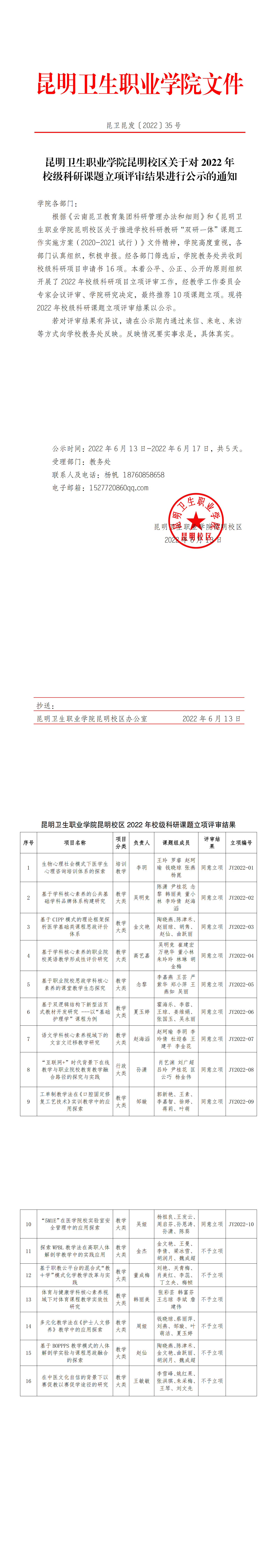 我院昆明校区2022年校级课题研究方向以提高教学质量、以课程建设为核心,有创新的学术思想,旨在推进教学教改工作、切实提高教学质量。