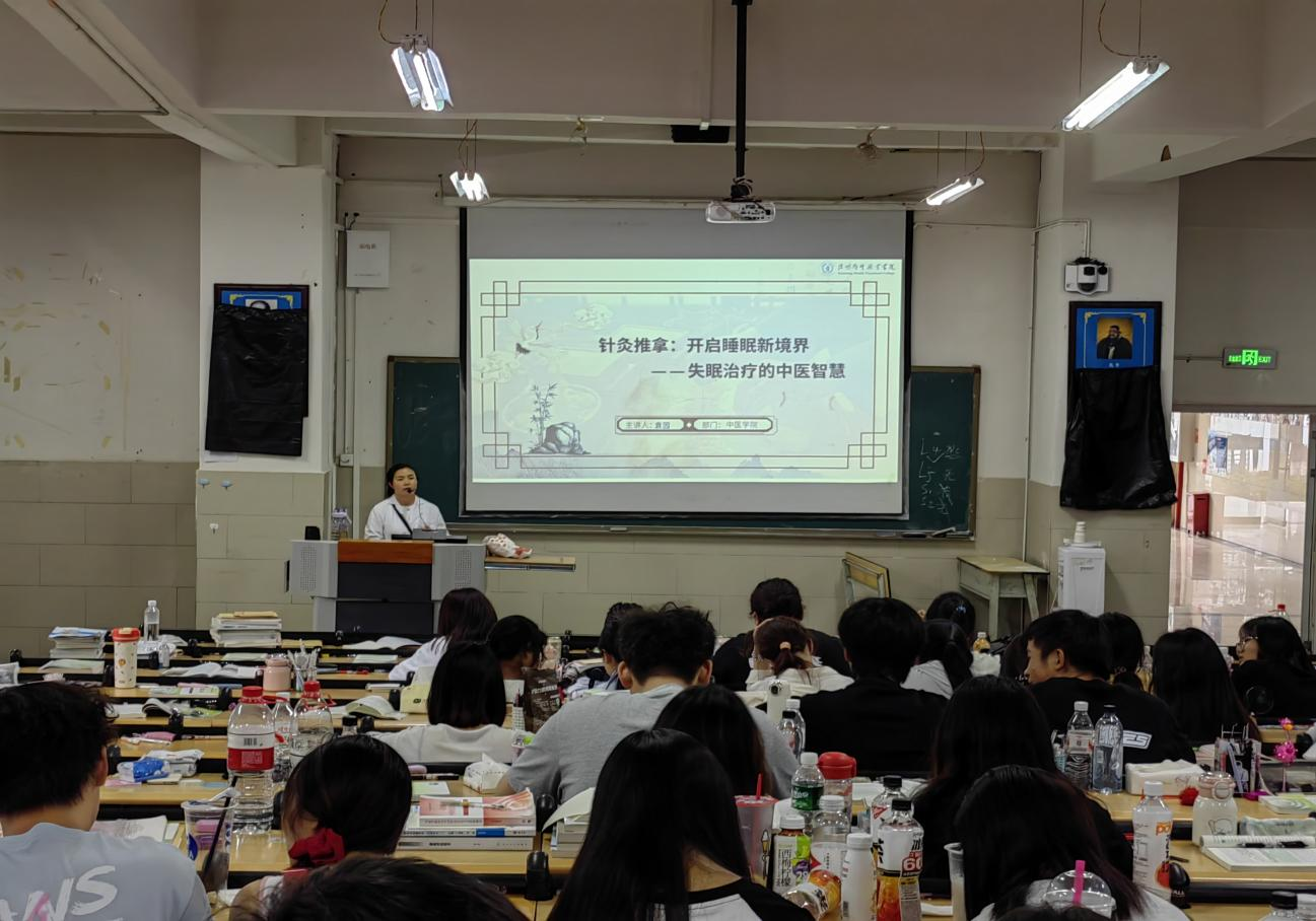 2025年5月22日,中医学院举办“岐黄系列讲座”第四讲,袁园老师主讲“针灸推拿:开启睡眠新境界——失眠治疗的中医智慧”。讲座深入剖析失眠现状,指出全球约30%的人存在睡眠障碍,中国成年人失眠发生率高达38.2%。袁老师阐述中医对失眠的独特认知,认为失眠主要因阴阳失衡、脏腑失调、气血失养所致,通过望、闻、问、切四诊合参诊断证型。