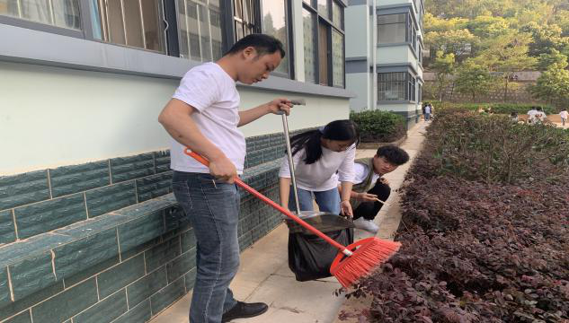 图1 支部副书记余建坤同志带领同学美化校园、清洁卫生