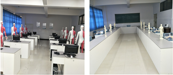 传统康复实训室:其中的实训设施有推拿按摩床、玻璃火罐、耳穴模型、网络版针刺手法测定仪、网络版针刺手法测定仪、经穴学及针刺仿真训练系统(含电脑)、经穴学及针刺仿真训练系统(含电脑)、熏蒸床等实训设施。能满足《传统康复治疗技术》、《针刺手法》、《推拿手法》等课程的实训教学任务。能开展的实训项目有各条经脉的点穴划经、针刺手法、灸法及各类推拿技术等。