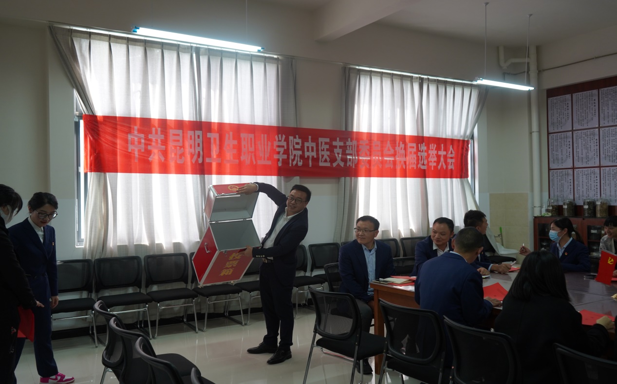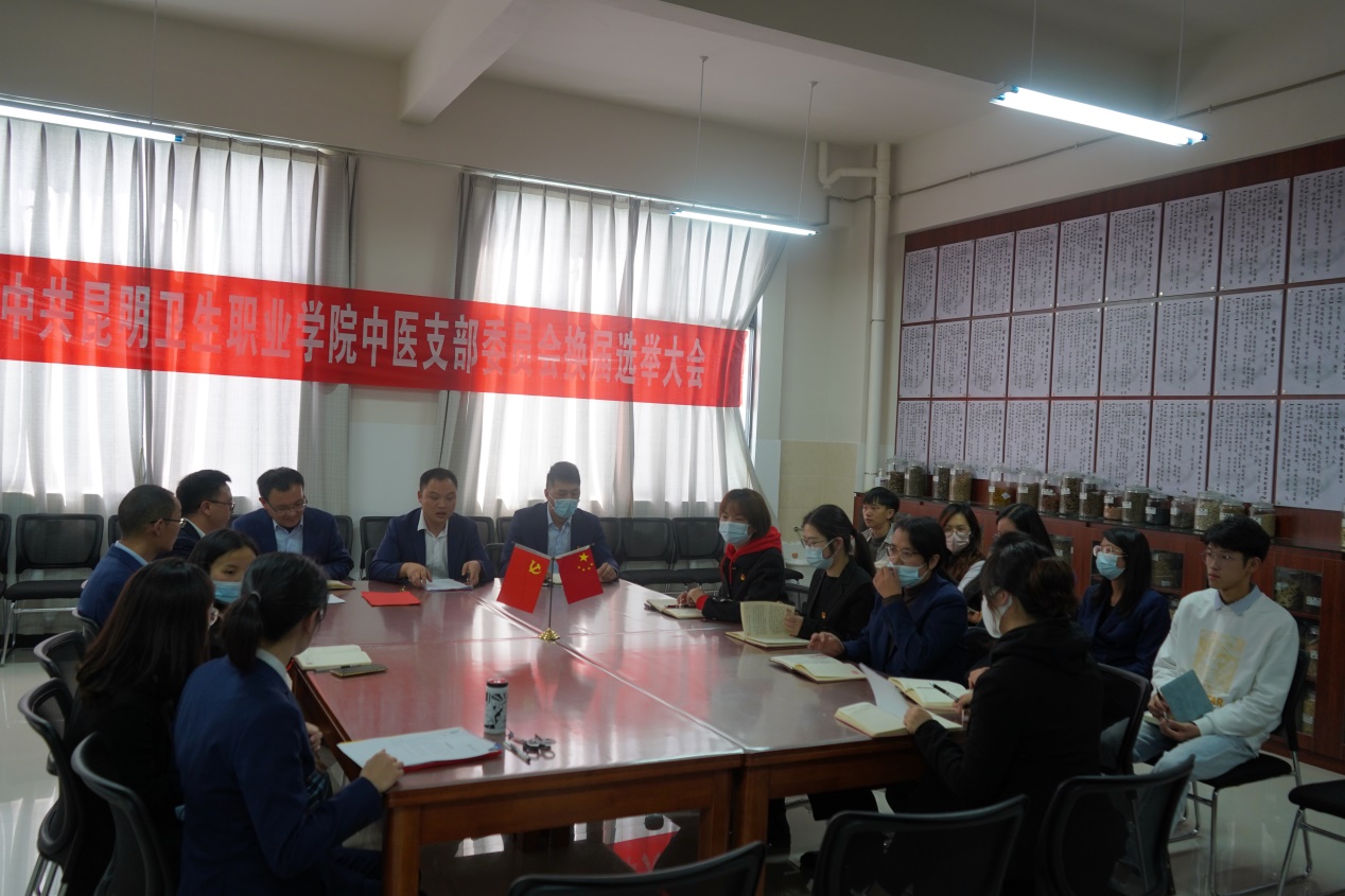 根据《中国共产党支部工作条例(例行)》《中央办公厅印发〈关于党的基层组织任期的意见〉的通知》,按照《中共昆明卫生职业学院委员会关于基层党支部设置调整和各党支部换届选举工作方案》相关要求,中医党支部于2022年10月28日下午召开了支部委员会换届选举大会。